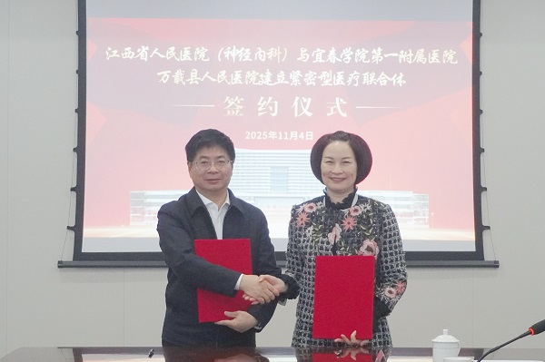 为深入贯彻落实国家医改政策,推动优质医疗资源下沉,提升我院神经系统疾病诊疗水平,更好地服务万载县及周边地区百姓。11月4日上午,江西省人民医院与我院举行神经内科紧密型医疗联合体签约仪式,标志着两院合作迈入新阶段,开启了我院神经内科学科发展的新篇章。