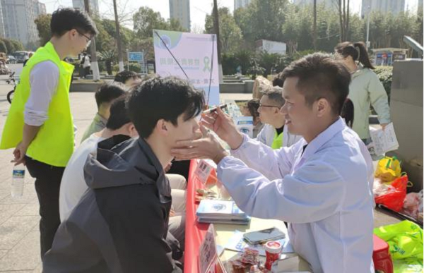 乐跑结束后,眼科专家团队随即开展大型义诊。现场设置专科咨询、基础筛查等服务区,提供免费视力、眼压、裂隙灯及眼底检查。针对中老年、高度近视、糖尿病患者等高危群体,医师团队一对一讲解防青知识,指导用药与慢病管理,并及时转诊疑似病例,实现“早发现、早干预”。
