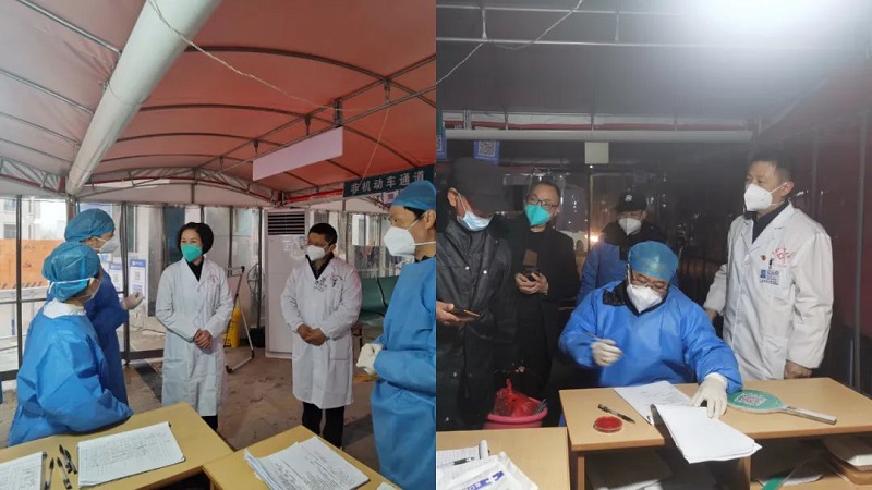 医院党委书记许玮,党委副书记、院长杨洲现场部署疫情防控工作
