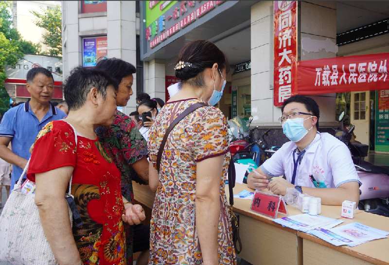 为发挥党员的先锋模范作用,优服务、作示范、勇争先,落实以人民健康为中心,8月24日,万载县人民医院外科党支部组织普外科、泌尿外科、五官科、内科、儿科等专科医疗专家和党员志愿者来到鹏泰超市广场开展健康义诊及普法宣传活动。