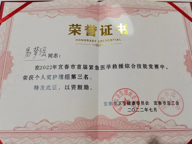 万载县人民医院在宜春市卫健委、宜春市总工会举办的2022年宜春市首届紧急医学救援综合技能竞赛中荣获团体二等奖。