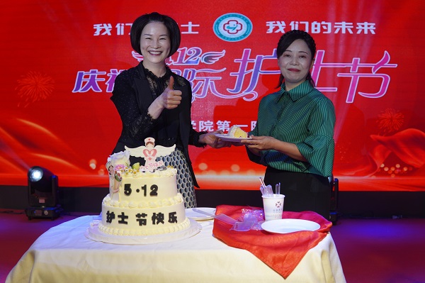 党委书记许玮与党委副书记、院长杨洲共同切蛋糕,并与在座的医护人员分享节日的甜蜜与喜悦。