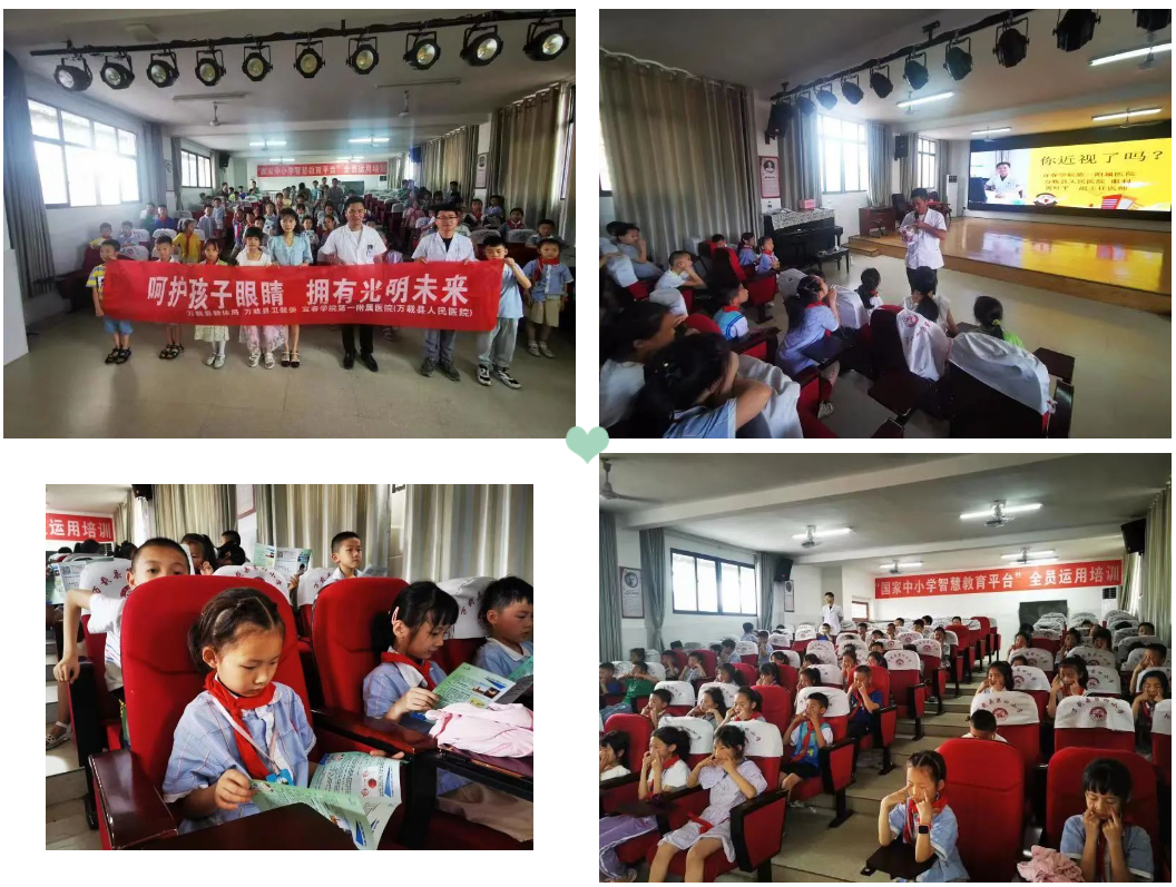 6月6日下午,我院眼科黄叶平副主任医师、彭紫辉主治医师来到万载第四小学, 进行“呵护孩子眼睛,拥有光明未来” 近视防控及眼健康讲座,通过眼球模型、PPT课和视频动画,让学生们认识了眼球的结构,熟悉了近视的形成、防控方法,注意养成良好的用眼习惯,按时、正确的做眼保健操。