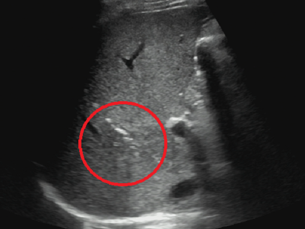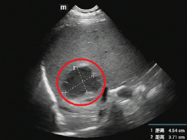 图1 红色圆圈处为肝脓肿