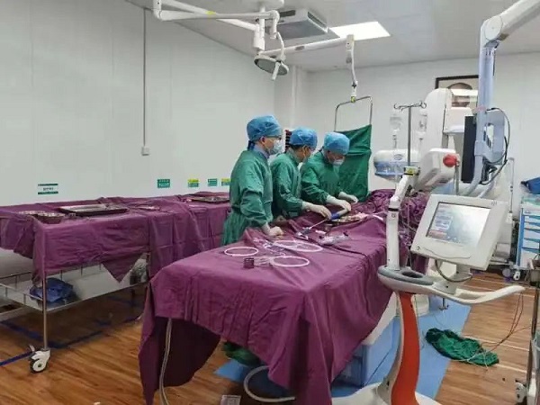心导管室配备先进的美国 GE 数字减影血管造影系统( DSA ),主动脉内球囊反搏系统( IABP ),临时起搏器及血管内超声,对冠脉介入诊疗技术、心律失常射频消融术、单双腔心脏起搏、外周血管造影及支架植入等一系列心血管介入诊疗有成熟的经验。