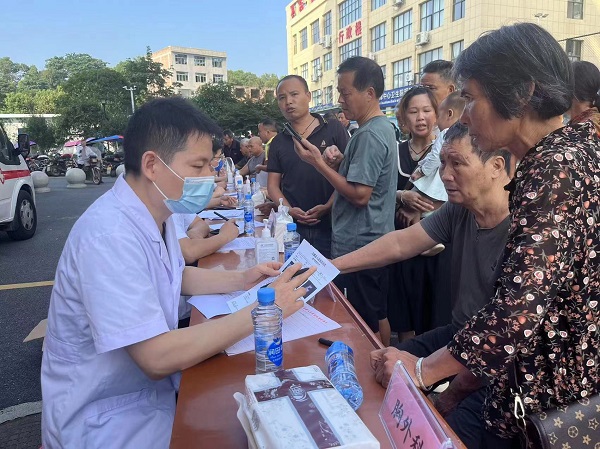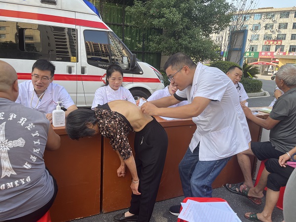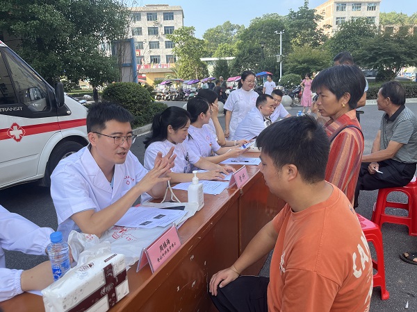 为深入贯彻落实党的二十大精神,守护群众健康。9月26日,我院外科党支部组织在我院的挂职的南大一附院脊柱外科周振海博士、疼痛科许牧博士、泌尿外科龚彬彬博士、内分泌科邹光荣博士及我院内、外、妇、儿、五官、超声影像专家团队,在株潭卫生院开展"情暖中秋博士团送健康"活动。