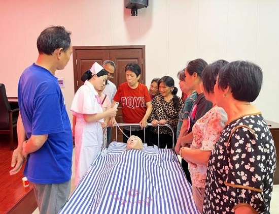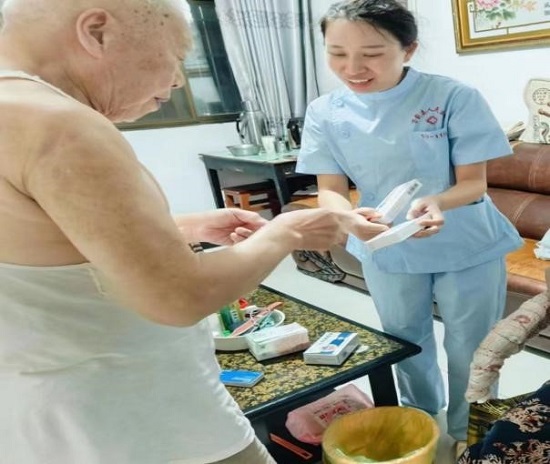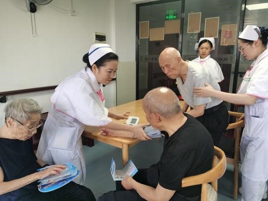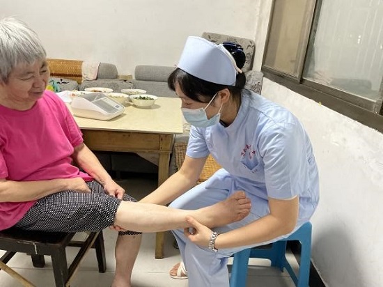 在医院护理部组织下,神经内科、呼吸内科、肿瘤内科、神经外科、儿科等护理团队走进南门社区10多户老人的家中,为居家老人们测量血压、测血糖、指导功能锻炼,带去健康知识和养生理念。