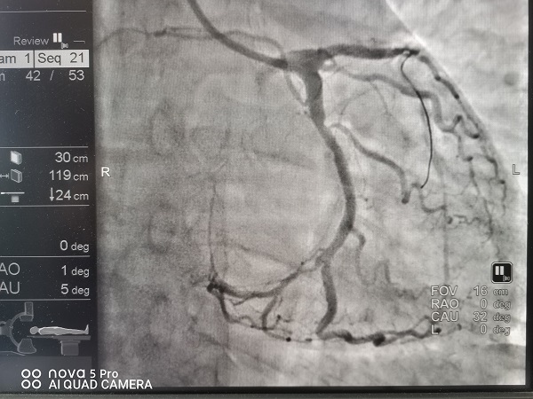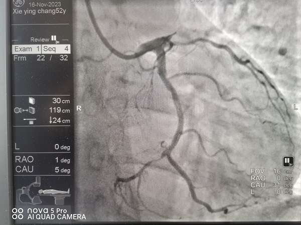 宜春学院第一附属医院 万载县人民医院心血管科涂小明主任正在总查房,突然收到胸痛中心远程会诊提示,原来是经过胸痛中心培训的黄茅镇卫生院医生首诊之后已完成了心电图检查并确诊了急性心肌梗死,然后发出了远程胸痛病人预警,涂小明主任根据心电图结果再次确诊后立即启动介入导管待命,09:30救护车进入我院大门后绕行我院急诊科及心血管科直达导管室,手术人员紧密合作,消毒、铺巾、穿刺桡动脉、造影、进指引导管、09:46过导丝,D2B(D2W)时间仅16分钟!创造了我院介入导管室抢救急性心肌梗死新的记录!