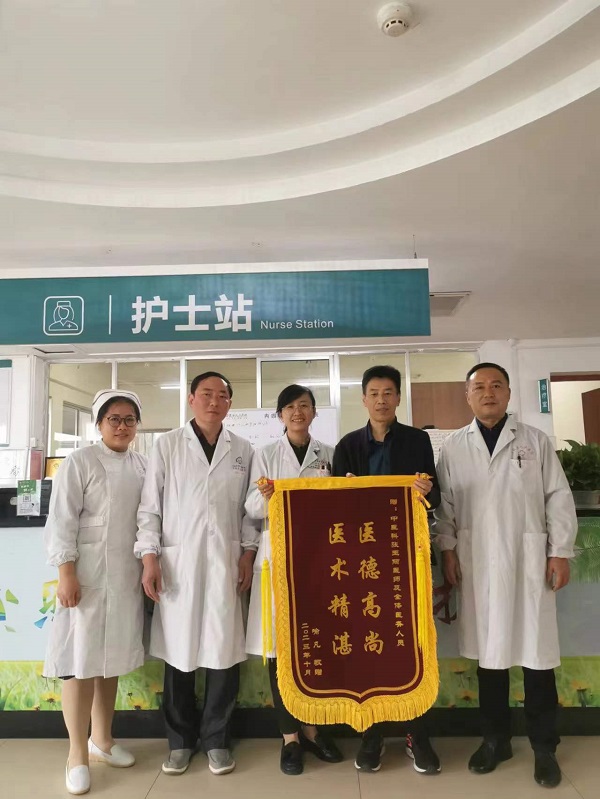 原来是患者家属来科室给医生送锦旗了。患者是一位65岁男性,为一长期维持血液透析患者,本次因“右手疼痛,伴拧毛巾、擦脸动作明显受限2周”于11月2日就诊,考虑为高尔夫球肘,使用浮针治疗时避开内瘘部位,治疗后疼痛基本缓解,动作受限完全缓解,整个治疗过程中,只扎一针,患者及家属表示对治疗效果很满意。后随访至今,患者已无不适,家属遂于当日送来锦旗对我院中医科罗林根医师表示感谢。浮针解决的问题可不止这一个,自我院开展浮针技术以来,已治愈诸多患者,因为使用浮针帮助患者解决疼痛而收获了患者满满的谢意与锦旗。