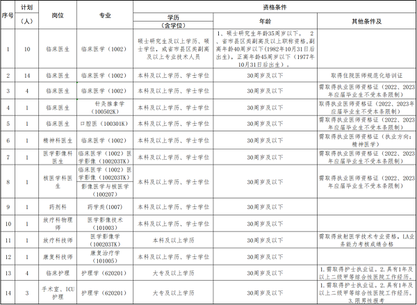 根据2023年万载县卫健系统第二批次招聘合同制卫生专业技术人员公开招聘有关规定,现将宜春学院第一附属医院(万载县人民医院)2023年招聘合同制卫生专业技术人员招聘计划等事项公告如下: