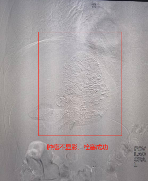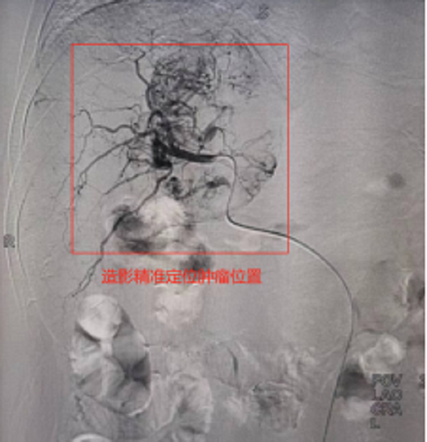 此次来院检查腹部增强CT提示:肝右叶占位性病变,考虑为原发性巨块肝癌,肿瘤大小达到60mmx84mm。患者之前已进行过结肠癌根治性右半结肠切除+胆囊切除术,病情复杂,身体虚弱,患者及家属强烈要求行微创介入治疗。经术前充分沟通及告知各种治疗方案的优缺点后,介入团队选择为患者行TACE介入微创治疗,后续将与靶向、免疫联合治疗达到肝癌的综合治疗。经过积极术前准备,普外科介入团队成功为患者实施了首例肝动脉化疗栓塞术,手术过程顺利,术后患者恢复良好,正在医院接受后续治疗。