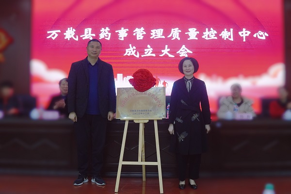 万载县卫生健康委员会党委书记、主任刘海勇,宜春学院第一附属医院 万载县人民医院党委书记许玮共同为万载县药事管理质量控制中心揭牌。