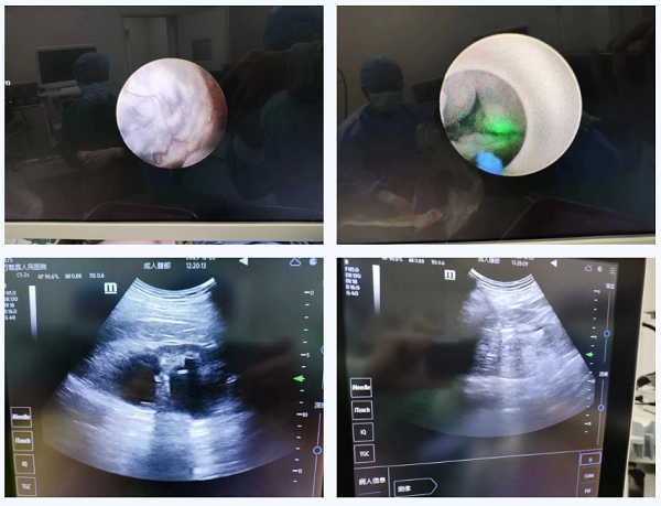 经过泌尿外科团队的精心准备,采用B超引导下,先行经皮肾钬激光肾结石碎石取石术,再在肾镜下用钬激光切开囊肿行肾囊肿去顶术治疗。术后,袁大哥已痊愈出院,其对手术效果非常满意。