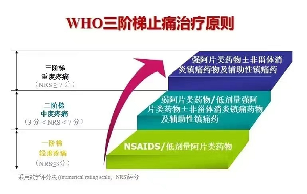 ①第一阶梯:使用非阿片类镇痛药物,主要适用于轻度疼痛的患者,如阿司匹林、布洛芬等。