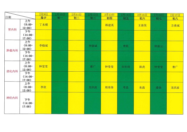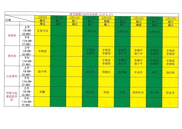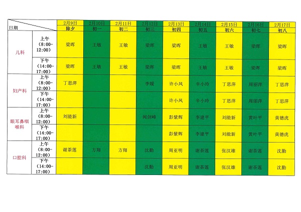 我院为无节假日医院,为方便您提前了解我院春节期间门诊排班情况,合理安排就诊时间,现将我院2024年春节门诊排班公示如下。