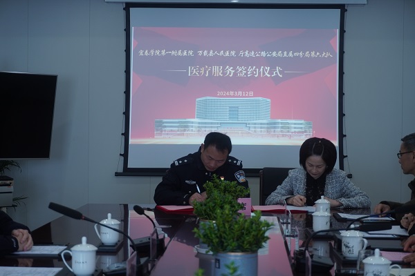 为充分做好民辅警医疗保障,体现关爱民辅警身心健康,全面提升应对高速公路重特大事故快速响应、应急处置和救援服务能力,3月12日上午,我院与厅高速公路公安局直属四分局第六大队签订警医共建合作协议。厅高速公路公安局直属四分局第六大队大队长廖金兵一行3人出席仪式,参加仪式的有医院党委书记许玮,副科级干部龙启明及医务科、护理部、急创中心、急诊科、院前急救科等职能科室和临床科室主任代表。仪式由宜春学院第一附属医院 万载县人民医院副院长辛明辉主持。
