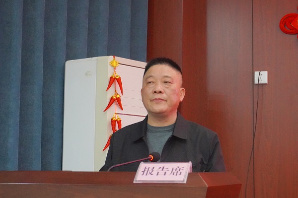 副科级干部龙启明总结2023年党风廉政建设工作,解读2024年全面从严治党、加强党风廉政建设及反腐败工作计划,布置医药领域腐败问题集中整治重点对象自查自纠工作。