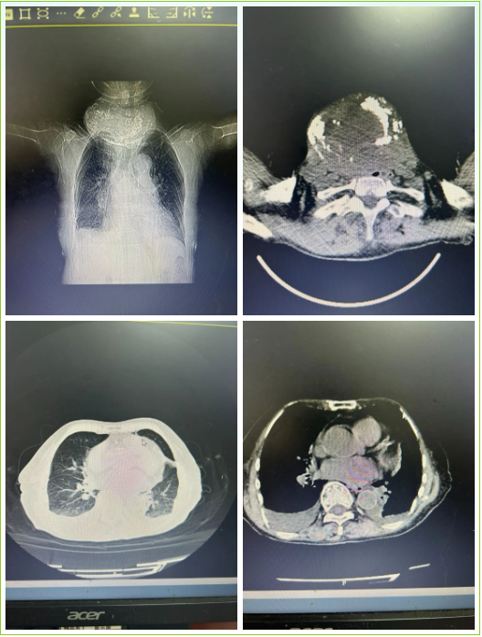 患者是一名78岁的老年女性,年轻时就发现颈部有肿物,由于不影响正常生活,一直没有太在意。50余年来肿物逐渐增大,尤其在近几年,肿物增长迅速,最近1月更是出现了气促、呼吸困难、高热、吞咽困难等症状,严重影响了生活起居,遂前来我院问诊。入院后,主管医师李慧芬对患者进行了详细检查,诊断为巨大甲状腺肿、肺部重度感染、胸腔积液、重度低蛋白血症,还伴有中度贫血。