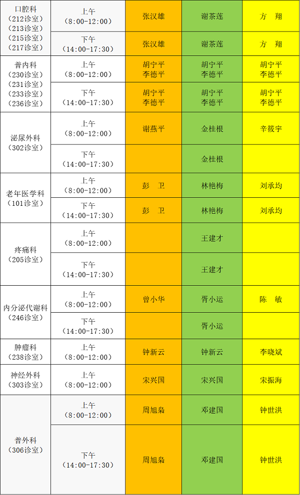 “中秋节”假期门诊排班表(9.15—9.17)