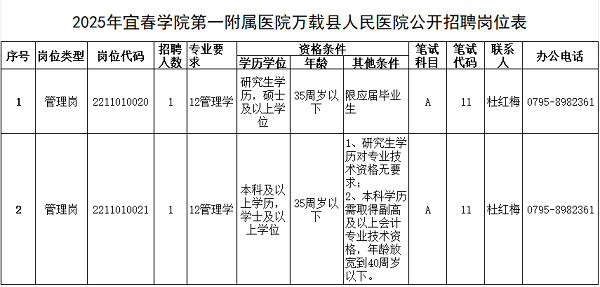 根据宜春市事业单位2025年统一公开招聘工作人员有关事项公告,现将宜春学院第一附属医院万载县人民医院 2025年事业单位公开招聘工作人员招聘计划等事项公告如下: