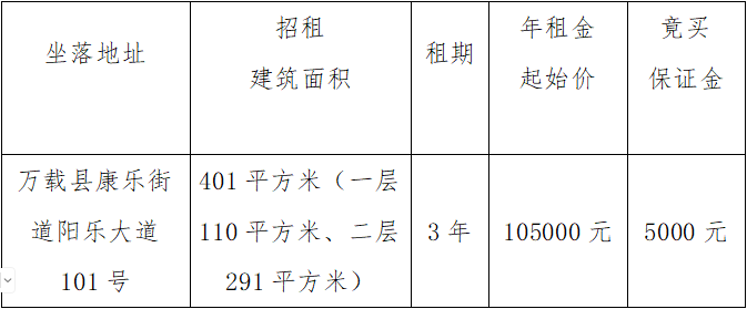 万载县人民医院现将万载县康乐街道阳乐大道101号,两层用房向社会公开招租,招租事项如下: