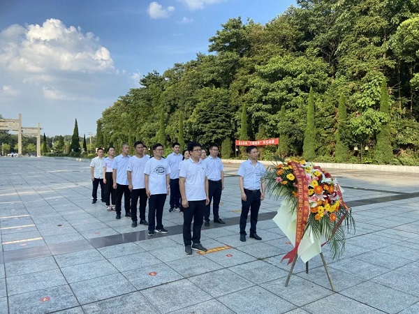 活动最后,全体党员怀着对革命先烈的敬仰之心列队来到烈士纪念碑前,鞠躬默哀,敬献花篮,表达了对革命先烈的深切哀思和崇高敬意。