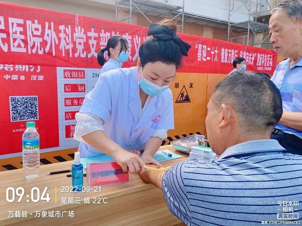 为推进全民健康知识普及,进一步提高民众的健康素养和健康水平。9月21日上午,万载县人民医院组织内科、外科、儿科、妇产科、五官科医疗专家和党员志愿者来到宝源万象城市广场,开展“喜迎二十大,健康万载行,科普向未来”健康科普暨义诊活动,为广大市民进行健康义诊、知识讲座、科普宣传。