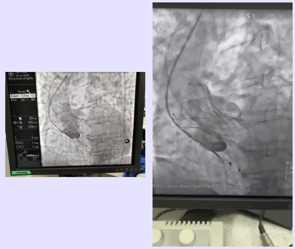 术中,团队凭借精湛技术与默契协作,成功将一枚30mm的微创可回收人工生物瓣膜精准输送至病变的主动脉瓣位置并释放。术后即刻评估显示:跨主动脉瓣压差显著降至1 mmHg;患者血流动力学得到根本性改善;冠脉血流灌注良好,无相关并发症。