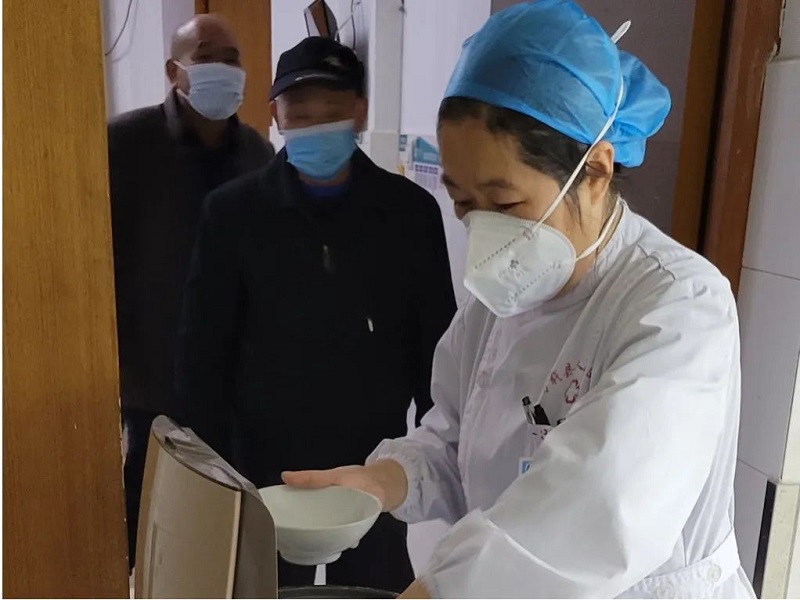 为方便患者,消化内科、心血管科医护人员利用自己储备的物资,熬制白粥,免费送给病人喝。暖心的一幕幕出现在病房中,让病人及家属感受到温暖与关怀。