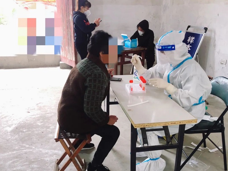 本次疫情,我院抽调88人支援万载大规模核酸采样工作,主要负责城区、马步乡、株谭镇等区域,气温骤降,天气寒冷,在各个核酸采样现场,面对数量繁多的采样人群,医务人员克服现有条件困难,穿着密不透气的防护服,以高度的责任感争分夺秒地进行采样工作。