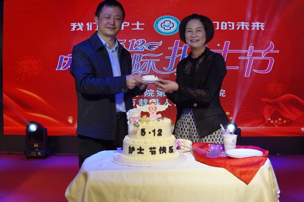 党委书记许玮与党委副书记、院长杨洲共同切蛋糕,并与在座的医护人员分享节日的甜蜜与喜悦。