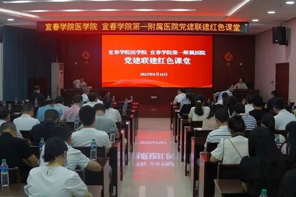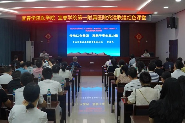 本次活动采用党建联建的创新模式,宜春学院医学院党委书记彭少君、院长易少波及院班子成员和各教研室主任等一行26人,我院在家院领导、各党支部书记、教研室主任、全体党员及宜春学院医学院3名实习学生党员参加活动。