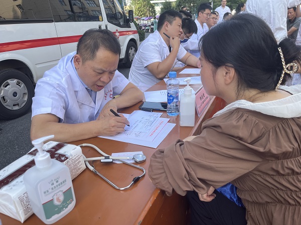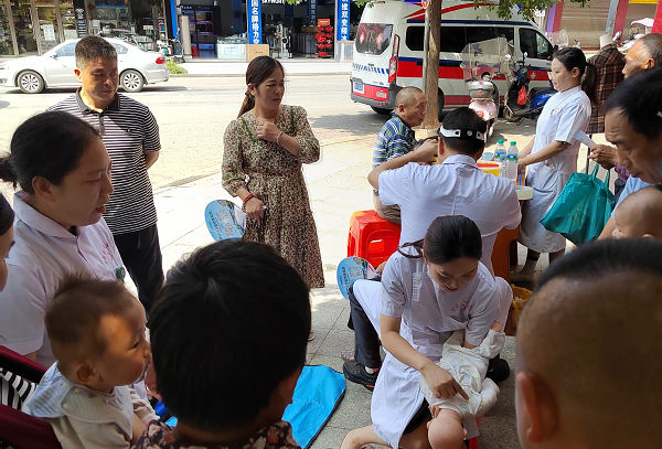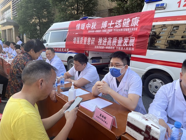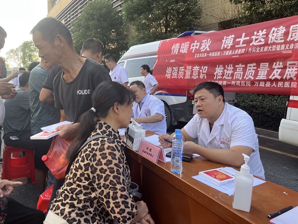 为深入贯彻落实党的二十大精神,守护群众健康。9月26日,我院外科党支部组织在我院的挂职的南大一附院脊柱外科周振海博士、疼痛科许牧博士、泌尿外科龚彬彬博士、内分泌科邹光荣博士及我院内、外、妇、儿、五官、超声影像专家团队,在株潭卫生院开展"情暖中秋博士团送健康"活动。
