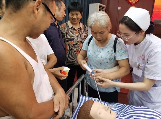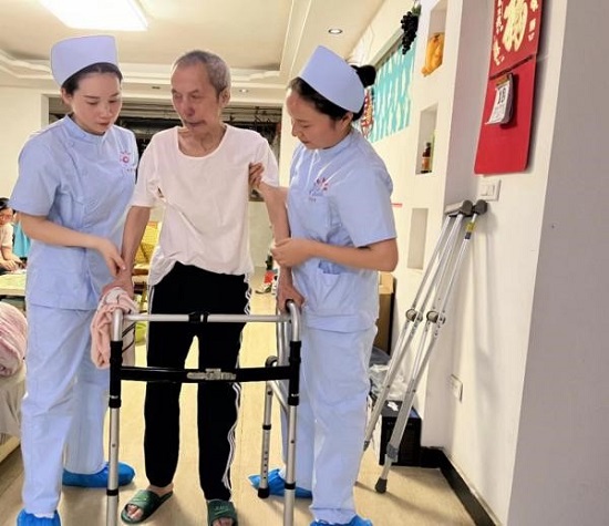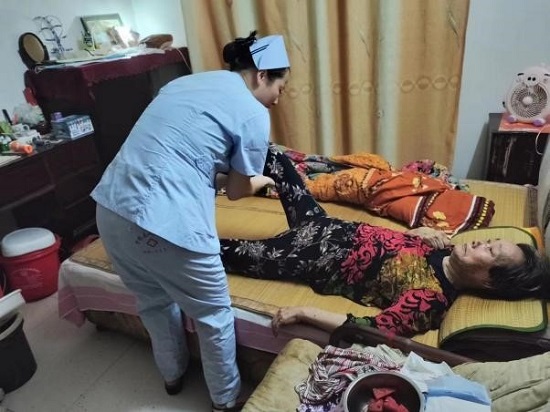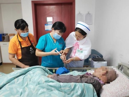 在医院护理部组织下,神经内科、呼吸内科、肿瘤内科、神经外科、儿科等护理团队走进南门社区10多户老人的家中,为居家老人们测量血压、测血糖、指导功能锻炼,带去健康知识和养生理念。