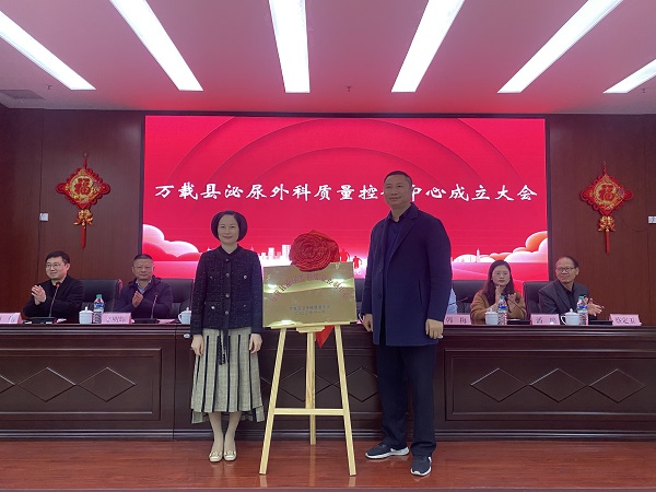 万载县卫健委党委书记、主任刘海勇,宜春学院第一附属医院 万载县人民医院党委书记许玮共同为万载县泌尿外科质量控制中心揭牌。