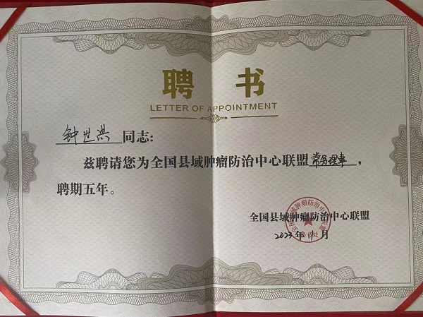 宜春学院第一附属医院 万载县人民医院入选为“百县十万人肿瘤筛查公益行动合作单位”并授牌,普外科钟世洪主任被聘为“全国县域肿瘤防治中心联盟”常务理事。