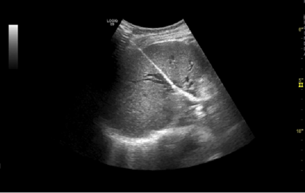 为了解决这个难题,我院普外科主任钟世洪团队和超声诊断科主任丁发辉团队经过严密讨论,拟定患者在全麻状态下行PTCD术,经彩超引导,置入右肝管,穿刺成功后右肝管引流出约120ml白胆汁。