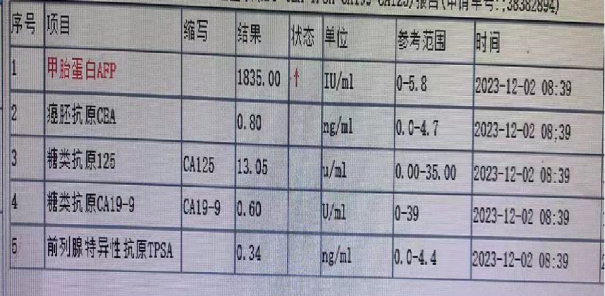 患者是一名68 岁的男性。因确诊“肝硬化”6年,发现甲胎蛋白升高3天入院。患者6年前有“肝硬化”病史,予恩替卡韦抗病毒治疗,未定期复查肝功能。既往有高血压病史,予苯磺酸左旋氨氯地平降压治疗。2021年因升结肠癌在我院住院行腹腔镜辅助下根治性右半结肠切除+胆囊切除术。