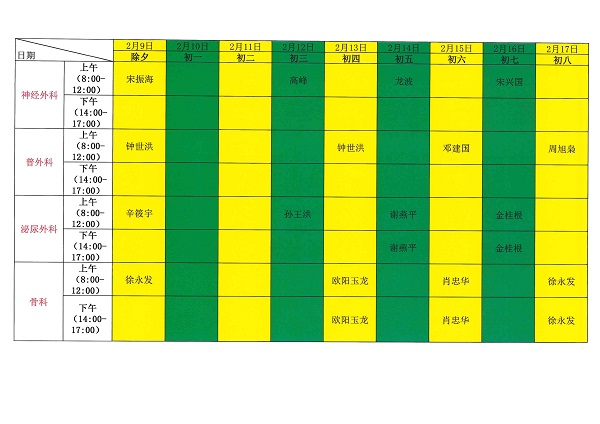 我院为无节假日医院,为方便您提前了解我院春节期间门诊排班情况,合理安排就诊时间,现将我院2024年春节门诊排班公示如下。