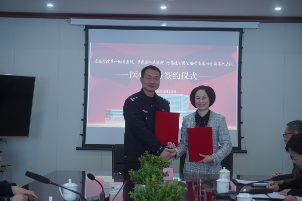 医院党委书记许玮与厅高速公路公安局直属四分局第六大队大队长廖金兵签约。