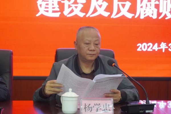 副科级干部龙启明总结2023年党风廉政建设工作,解读2024年全面从严治党、加强党风廉政建设及反腐败工作计划,布置医药领域腐败问题集中整治重点对象自查自纠工作。