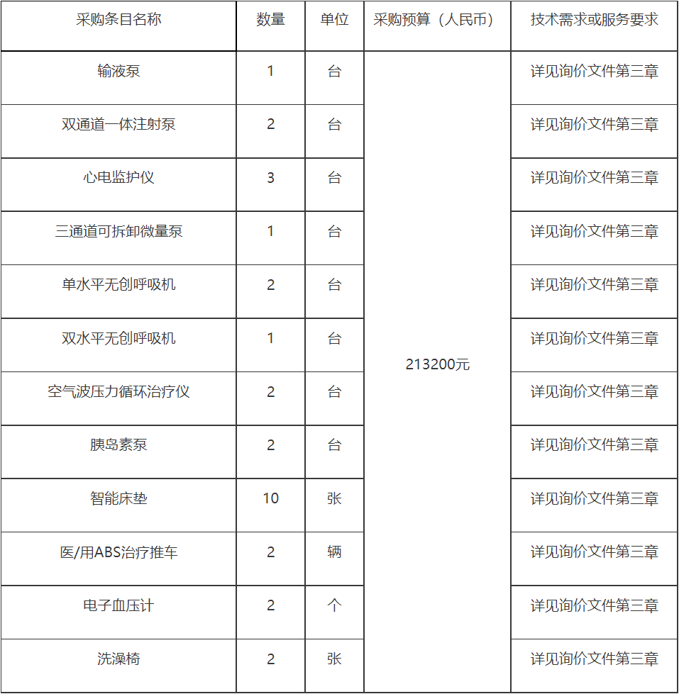 5、本项目为单一产品采购项目,核心产品为:心电监护仪、呼吸机