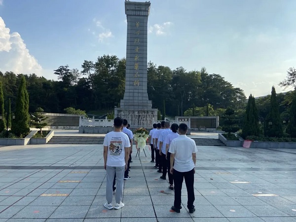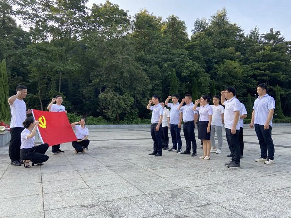 活动最后,全体党员怀着对革命先烈的敬仰之心列队来到烈士纪念碑前,鞠躬默哀,敬献花篮,表达了对革命先烈的深切哀思和崇高敬意。