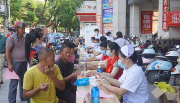 为发挥党员的先锋模范作用,优服务、作示范、勇争先,落实以人民健康为中心,8月24日,万载县人民医院外科党支部组织普外科、泌尿外科、五官科、内科、儿科等专科医疗专家和党员志愿者来到鹏泰超市广场开展健康义诊及普法宣传活动。