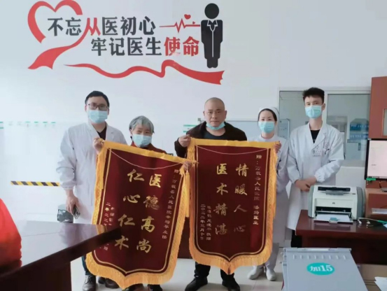 为表达谢意,患者在最近这次复诊的时候送来了两面锦旗。可能我们感动了他,他也感动了我们。这两面锦旗,对于全体医护人员而言,是一种激励,也是一种责任。健康所系,生命相托,万载县人民医院全体医护人员深知肩上的责任重大,必将带着患者及家属的期待,不断学习先进的医疗技术,提升服务水平,更好地为人民生命健康保驾护航。